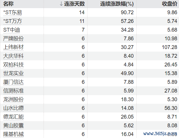25只个股连续上涨5个交易日及以上25只个股连续上涨5个交易日及以上