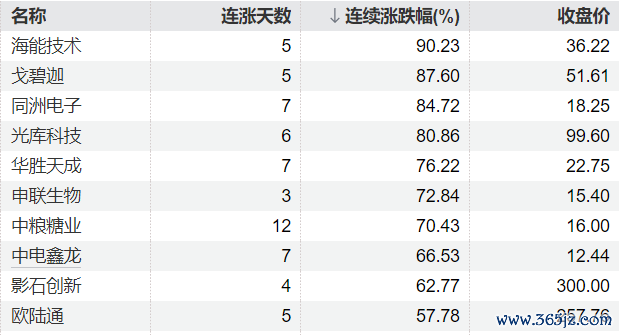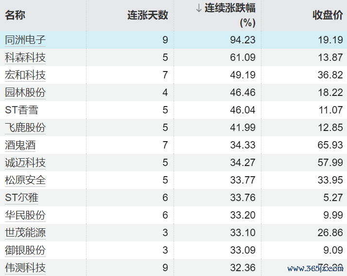 139只个股连续上涨5个交易日及以上139只个股连续上涨5个交易日及以上